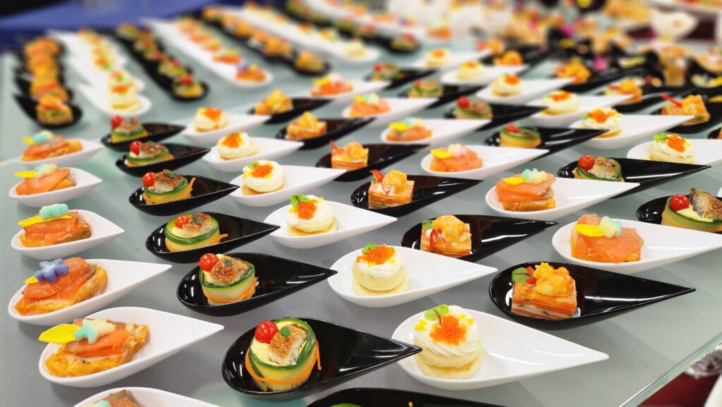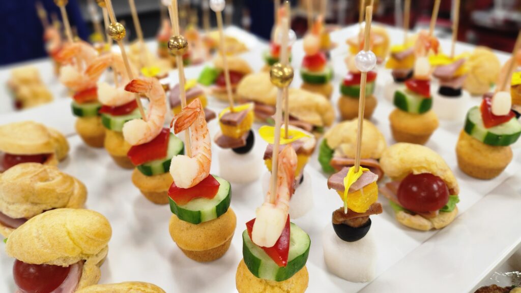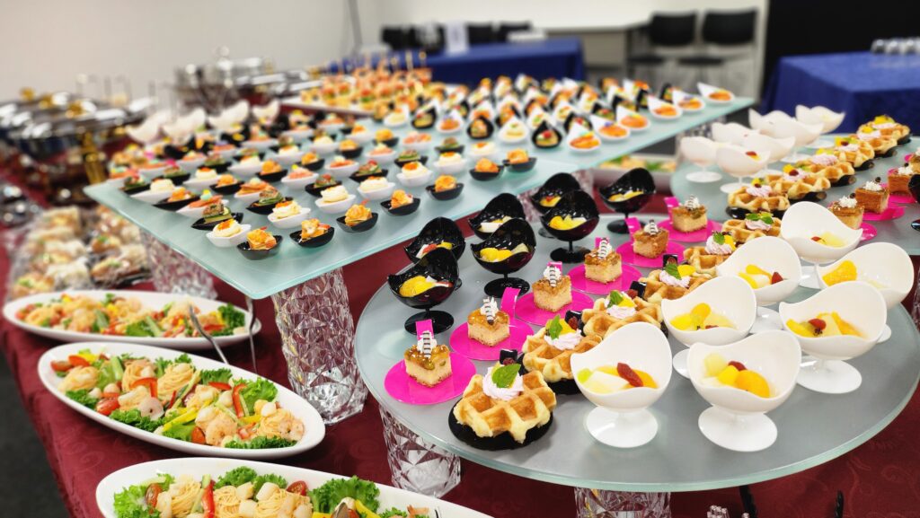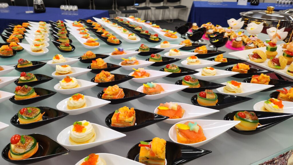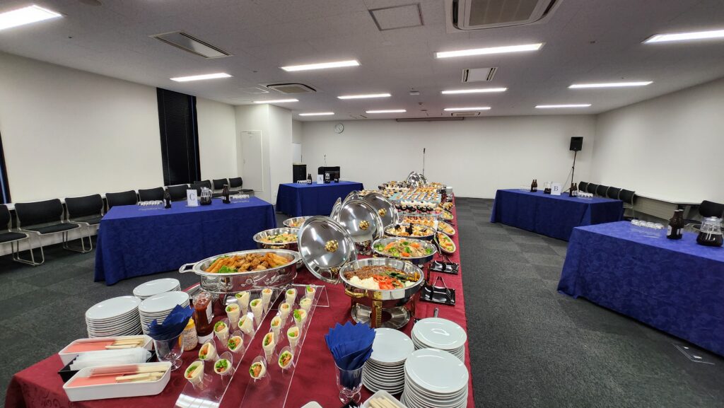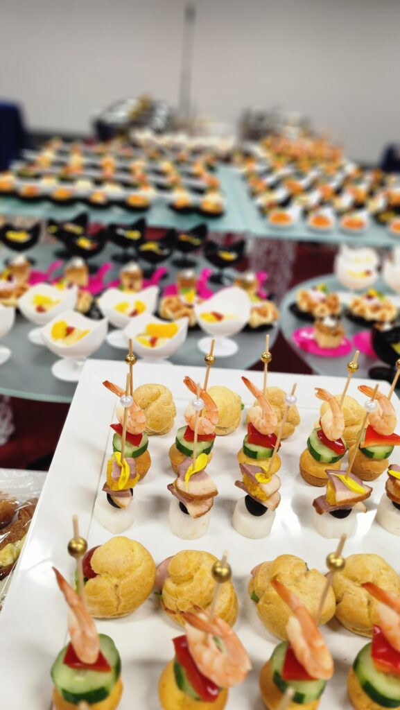 企業懇親会 80名様のセッティング 新作のフィンガーフードはキレイ✨に仕上がっています。