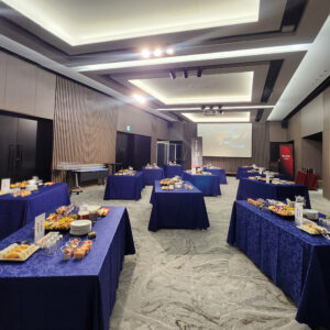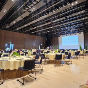 - 中日ホール 内定式からの懇親会 着席ブッフェスタイルでおもてなし 200名様をお迎えします。